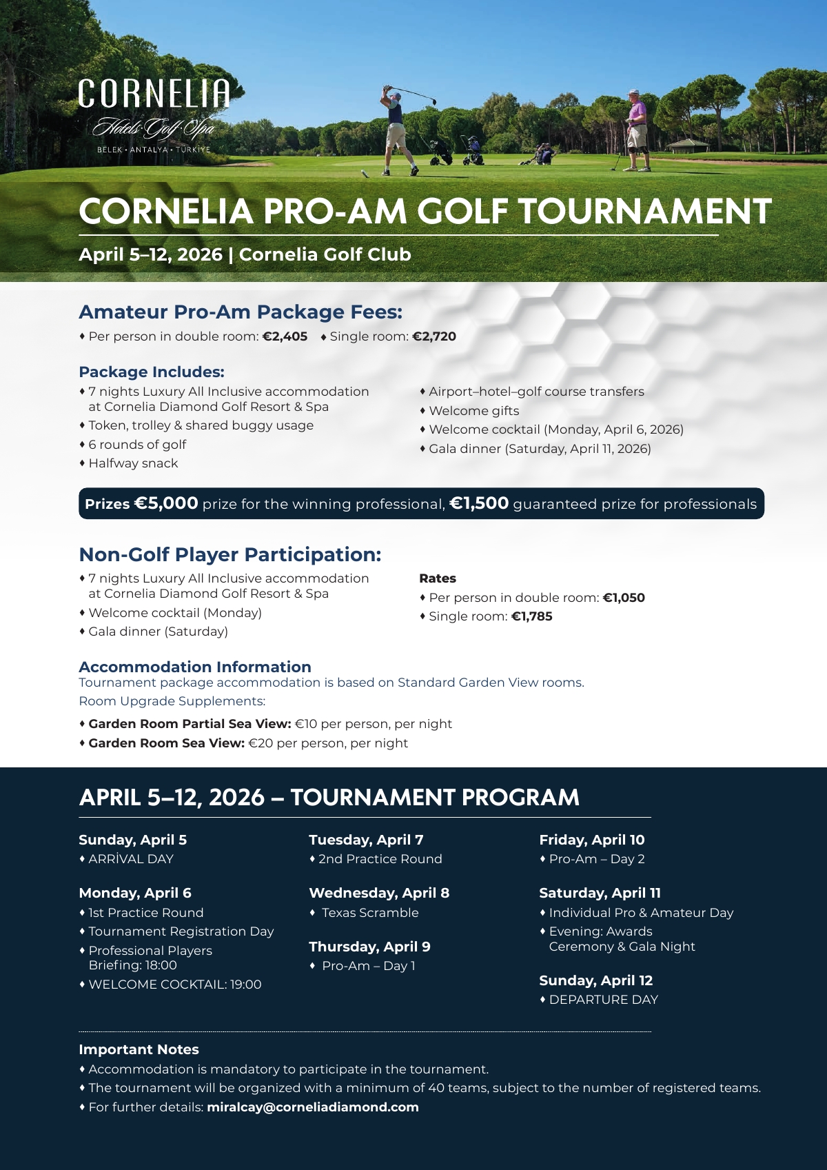 Golf enthusiasts will compete for the championship at the Cornelia Pro-Am Golf Tournament, which will take place between 05 - 12 April 2026.