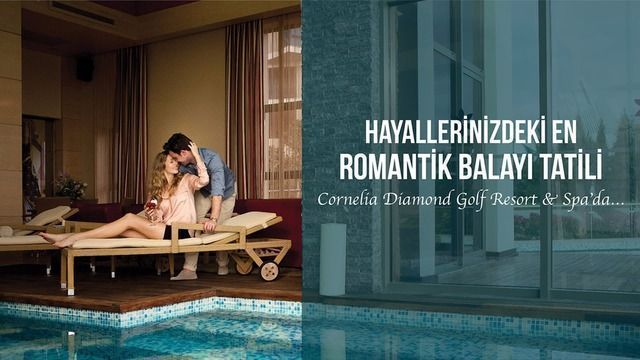 "Cornelia Diamond Golf Resort & Spa, hayatınızın en önemli tatil dönemi olan balayınız için her bir detayın en ince ayrıntısına kadar düşünüldüğü, çok özel bir teklif sunuyor. Balayınızın yanı sıra düğün organizasyonunuzu da Cornelia Diamond Golf Resort & Spa tesisimizde düzenlemekten mutluluk duyarız."